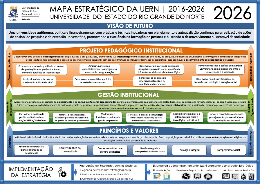 Aqui, você encontrará informações abrangentes sobre as diretrizes, práticas e estruturas de planejamento que adotamos para garantir uma gestão transparente, responsável e eficaz, visando ao interesse público e à melhoria dos serviços prestados pela UERN.