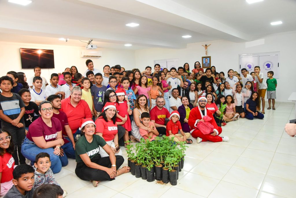 “Este ano a gente acrescentou um tema de responsabilidade ambiental, onde a gente traz a temática da conservação e preservação do planeta, e cada criança, além do presente, vai levar também uma muda para casa para poder fazer a plantação com sua família”, comentou a reitora da Uern, Cicilia Maia.