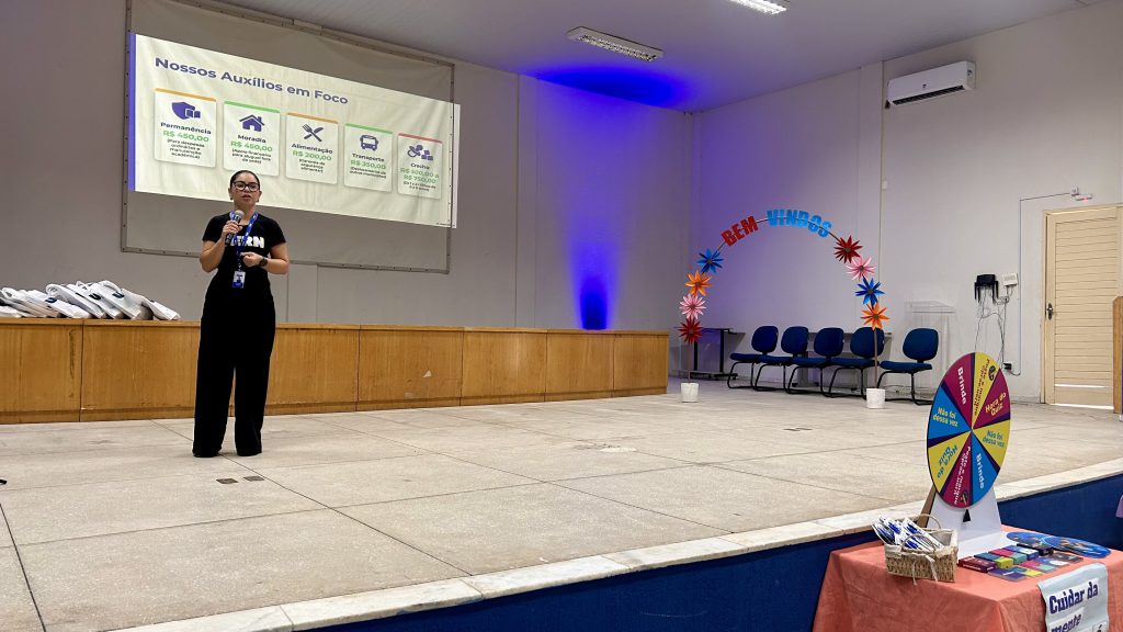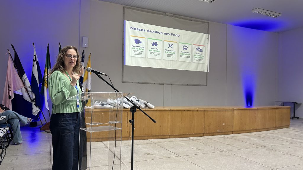 A titular da Pró-Reitoria de Assuntos Estudantis (Prae), Ana Angélica Nogueira, destacou a importância das políticas de assistência estudantil e ressaltou que o momento também simbolizou a presença feminina na condução das falas do evento. “O nosso lugar é onde você quer estar. Falar sobre assistência é falar sobre um direito de cada um de vocês, um direito que tem melhorado a cada ano e a cada semestre, seja na ampliação da oferta de vagas, seja na criação de novos auxílios. A nossa equipe vai estar sempre disponível para atendê-los”, disse.