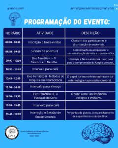 O principal objetivo do evento é discutir acerca das descobertas científicas sobre a neurociência do sono e refletir a respeito desse conhecimento nos mais diversos aspectos da nossa sociedade e cotidiano profissional.