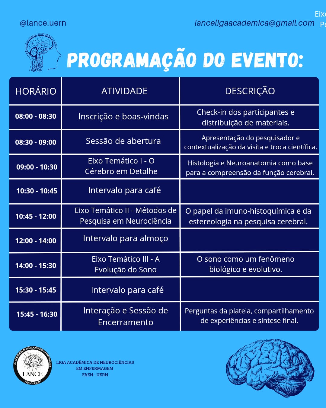 A Faculdade de Enfermagem da Universidade do Estado do Rio Grande do Norte (Faen/Uern), por meio da Liga Acadêmica de Neurociências em Enfermagem (Lance), realiza, no próximo dia 24 de novembro de 2025, às 8h, o evento internacional “Between Neurons and Dreams: A Journey into the Neuroscience of Sleep” (Entre Neurônios e Sonhos: Uma Jornada pela Neurociência do Sono).
